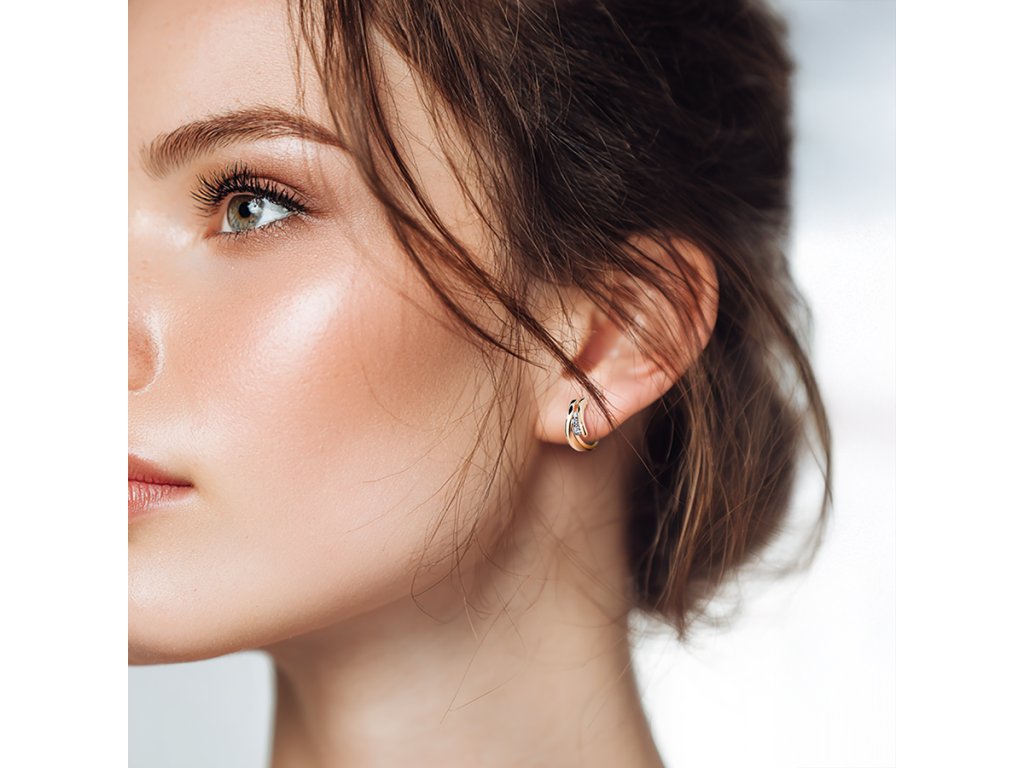 Designově dokonalé náušnice ze zlata v luxusním provedení. Náušnice se 6-ti zirkony jsou na jejich části ošetřeny metodou pískování, která šperku propůjčuje nezaměnitelný vzhled a stanou se tak výraznou ozdobou při nevšedních i běžných příležitostech . Do nejmenšího detailu propracovaný šperk vyrobený zkušenými zlatníky je dodáván v dárkové krabičce CUTIE Jewellery.