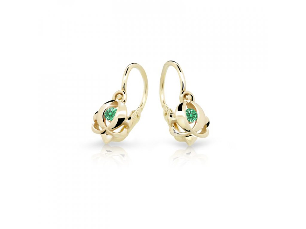 Zlaté náušničky vyrobené z růžového zlata ryzosti 585/1000 se zářícími zirkony v tmavě zelené barvě se stanou dokonalou ozdobou každé malé holčičky. Do nejmenšího detailu propracované šperky vyrobené zkušenými zlatníky jsou dodávány v originální designové dárkové krabičce CUTIE ve tvaru pyramidky.Doplňkové parametry
